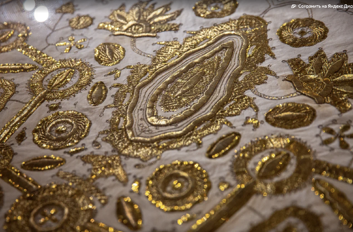 — Главное, что объединяет вещи из бывшей императорской резиденции и архангельских деревень — золотая нить в буквальном смысле слова. Идея выставки родилась в Архангельской области. Два года назад мы вместе с Каргопольским музеем и фондом «Дорогами Ломоносова» организовали проект «Дороги русского Просвещения». Рассказали о мечтах Екатерины II об устройстве в России городов с «разумной» планировкой. Когда увидели в фондах музея великолепное золотное шитье, решили, что лучшие образцы нужно привезти в Петербург, — говорит директор музея-заповедника «Царское Село» Ольга Таратынова.
